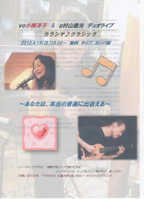 4月15日(日曜日)小柳淳子&村山義光 デュオライブが決まりました。